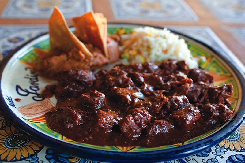 Al visitar una fonda o un restaurante en Zacatecas, no olvides probar las tradicionales enchiladas zacatecanas o el asado de boda. ¿Un postre? Aquí hallarás dulces en cada rincón. En las cocinas zacatecanas, como en el resto del país, el ingrediente principal es el maíz. Con su harina la gente prepara una gran variedad de platillos, bocadillos e incluso postres. Las enchiladas zacatecanas son tortillas enrolladas, rellenas de carne de cerdo deshebrada y sazonada con salsa de chile poblano. Esta delicia se sirve con cebolla, queso fresco y lechuga. Otro platillo muy tradicional es el asado de bodas que, como su nombre lo indica, se sirve para celebrar las nupcias; se prepara con carne y manteca de cerdo y chiles rojos o negros.